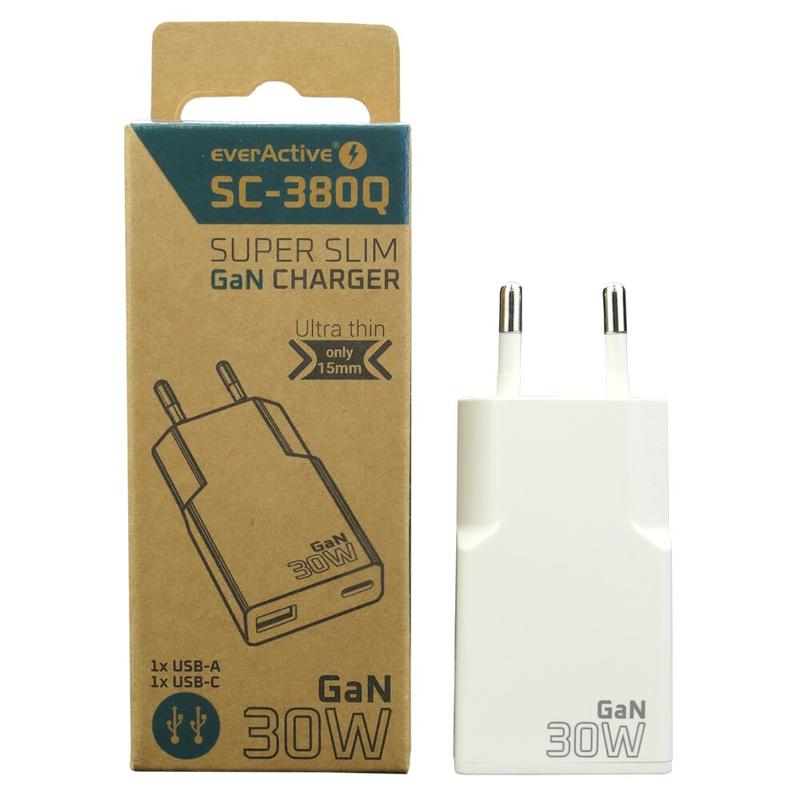 everActive SC-380Q GaN Super Slim 30W vegglader med USB QC3.0- og USB-C PD-porter