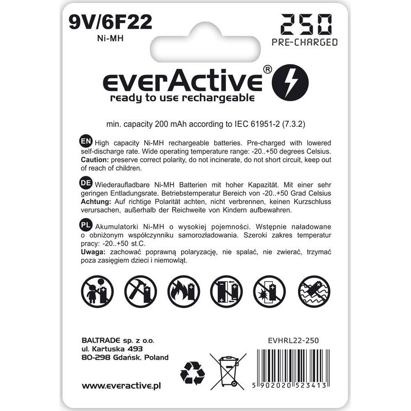 EverActive Silver Line EVHRL22-250 Ni-MH 6F22/9V oppladbart batteri 250mAh