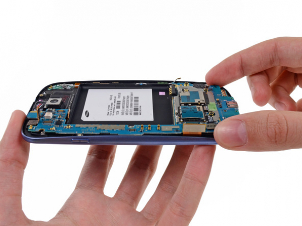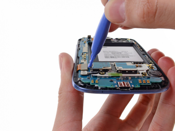 Sett inn et plaståpningsverktøy i det lille innsnittet over batteriet.