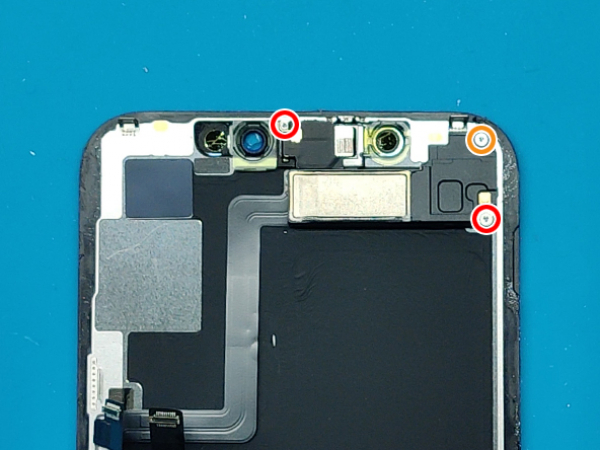 Fjern skruene som fester sensorenheten og høyttaleren på baksiden av skjermen: