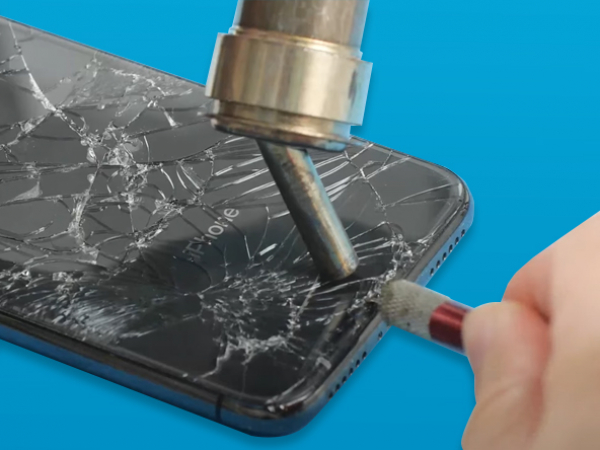 - Hvis skjermglasset knuses, taper du over glasset for å forhindre ytterligere brudd. - Dekk skjermen med overlappende strimler med klar selvklebende tape.