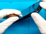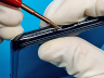 - Det nye batteriet bør ha forhåndsinstallerte limbånd, hvis ikke, bruk dobbeltsidig selvklebende teip. - Fjern beskyttelsesfilmer og sett det nye batteriet på plass.