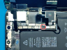 - Fjern fem skruer som fester logikkbrettets kontaktbrakett. - Tre 1,0 mm Y000 skruer. - En 1,3 mm Y000 skrue. - En 3,7 mm stjerneskrue. - Fjern kontaktbraketten. - Batterikontakten kan løftes ut av stikkontakten ved hjelp av spissen av en spudger eller en negl. - Tilkoblingskabelen bør bøyes litt opp for å forhindre kontakt med kontakten, noe som kan føre til strøm i telefonen.