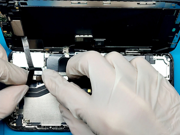 - Fjern skruene som fester dekselbraketten på logikkkortet og fjern braketten. - Fjern skruene som fester skjermkontaktbraketten og fjern braketten. - Bruk forsiktig en spatel eller en pinsett for å koble fra LED-panelkontakten, og lirke digitaliseringskabelkontakten opp fra stikkontakten. - Løft kabelen til han skiller seg. - Løft opp displayet. Tips: - Unngå å skade iPhone ved å holde oversikt over hver skrueposisjon og sette dem tilbake hvor de kom fra.