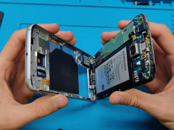 På dette tidspunktet bør du bringe den midterste metallrammen og resten av telefonen sammen igjen.