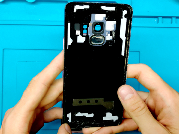 Plasser nettopp det bakre glasset på baksiden av telefonen.