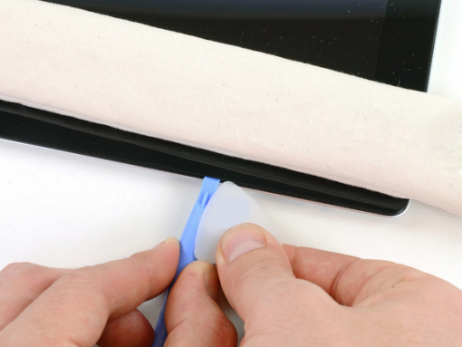Løsne limet ved det nederste høyre hjørnet av iPaden ved å skyve plekter rundt det.