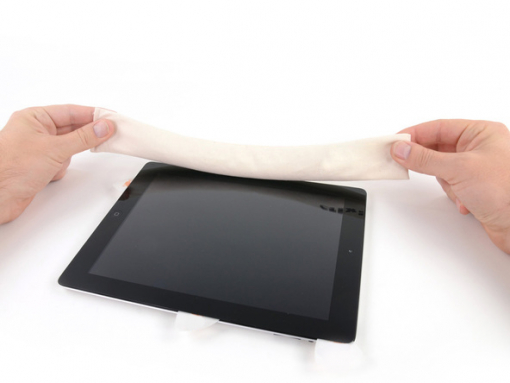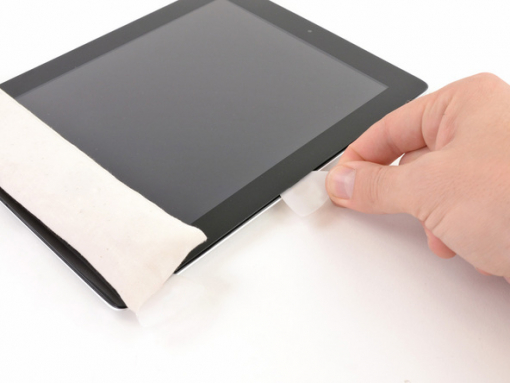 iOpener er en isolert pose som flytter varme til limstrimlene rundt skjermen på iPaden slik at denne kan løsnes.