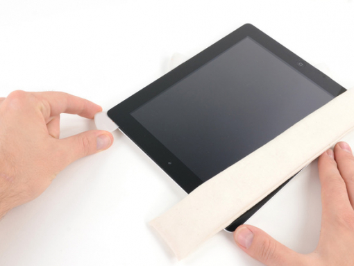Sett iOpener flatt ned på den høyre kanten av iPaden og glatt den ut. Pass på at det er god kontakt mellom iPaden og iOpener.