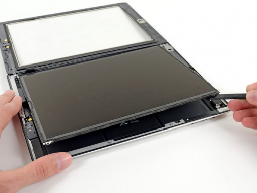 Løft høyre LCD-kant opp av iPaden med et plaståpningsverktøy eller en spudger.