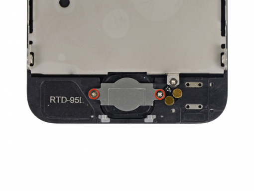 Two 1.3 mm Phillips screws securing the home button bracket to the display assembly need to be removed.