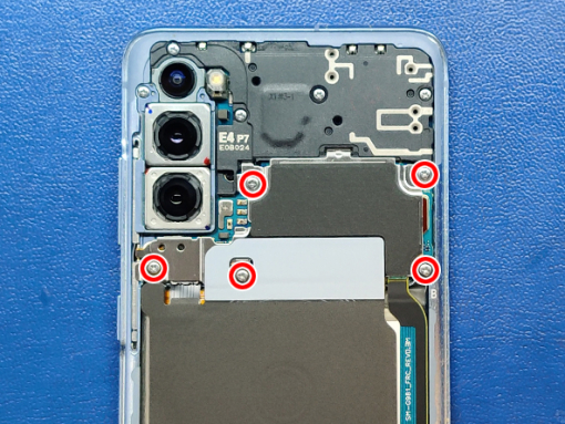 Remove the five 4.0mm Phillips screws securing the Qi charging coil.
