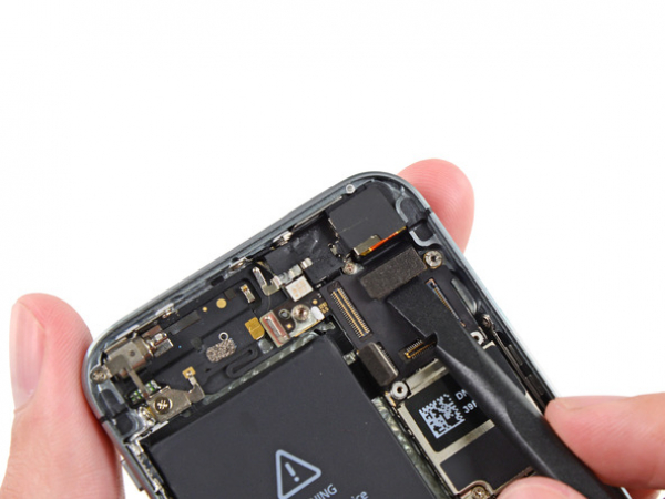 Lift the Lightning connector cable from its socket on the logic board with a spudger.