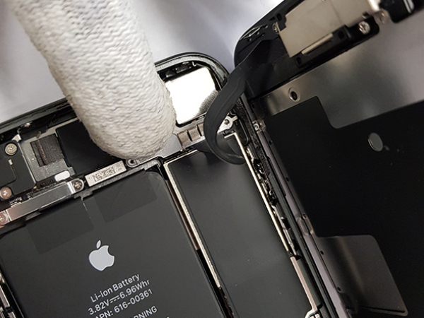 - Remove four Phillips screws which secure the LCD cable bracket: - Carefully use a spudger or a tweezer to disconnect LED panel connector, pry the digitizer cable connector up from its socket. -Do same thing with the sensor connector bracket, and sensor cable - Lift the cable until he separates. -Remove LCD display. Tip: - During this repair, take care of each screw's position. To avoid damages on your iPhone, make sure all the screws go back exactly where they came from.