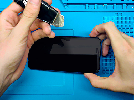 Regular reapair procedure requires you to remove the haptic engine so you can clear the path to the adhesive strips.