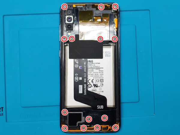 Remove a total of fourteen Phillips #00 screws that secure the phone's midframe.