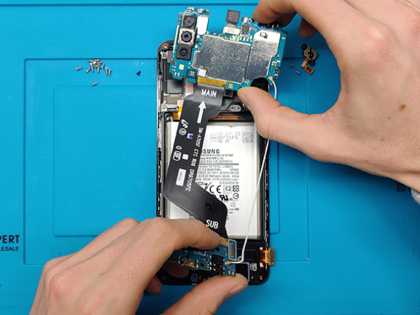 Pay attention to the thin antenna cable and flex cables that connect the MAIN and the SUB board.