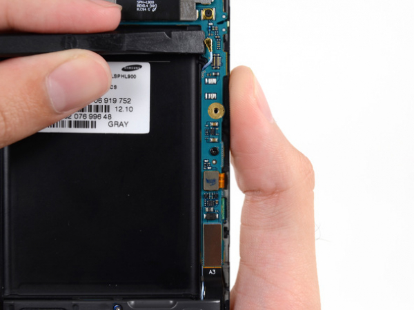 Use a plastic opening tool to lift the battery from the case. You need to insert the tool into the indentation above the battery compartment to do this.