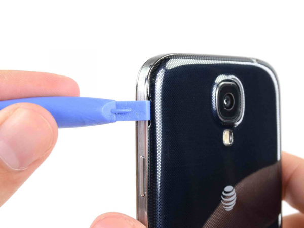 Insert our opening tool in the recess to the left of the back-facing camera, in the area around power button.