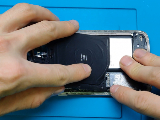 Start with the larger pieace a.k.a. the NFC & wireless charging assembly.