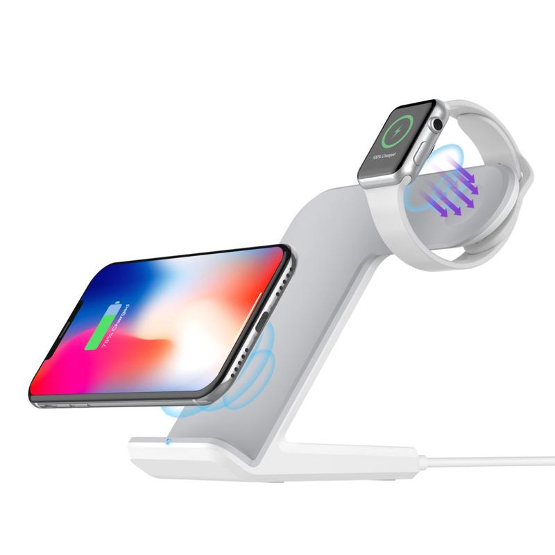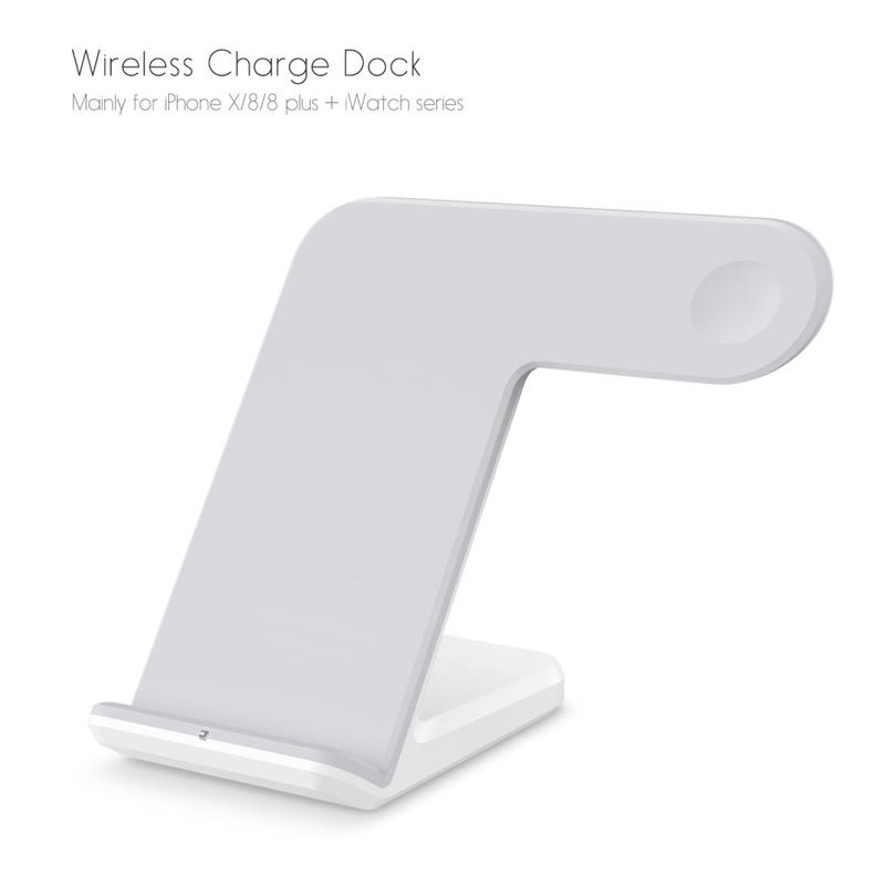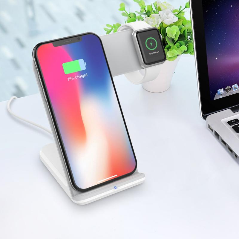 F11 2-i-1-stativ for trådløs lading av smartklokke med Qi trådløs hurtiglader for iPhone, Samsung og Apple Watch - hvit