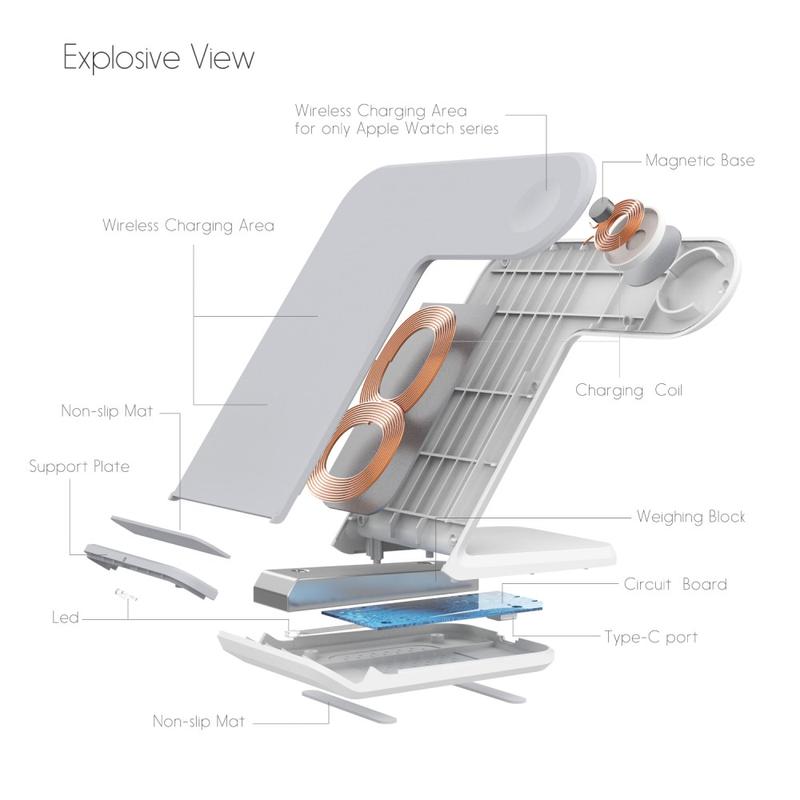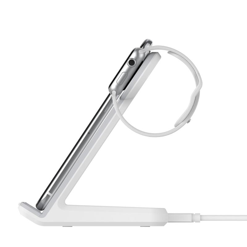 Den elegante designen gjør at dette ladestativet ser dekorativt ut på skrivebordet hjemme eller på kontoret. Lad opp din Qi-kompatible smarttelefon med en utgangseffekt på hele 10 W. Samtidig kan du lade og oppbevare Apple Watch. Alle enhetene holdes i en perfekt visningsposisjon.