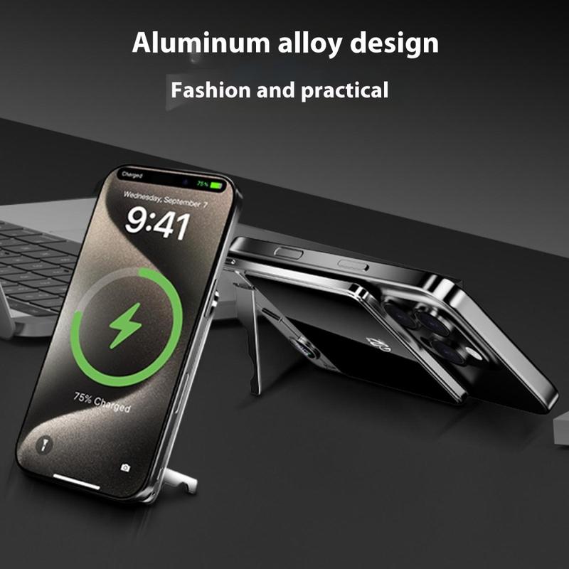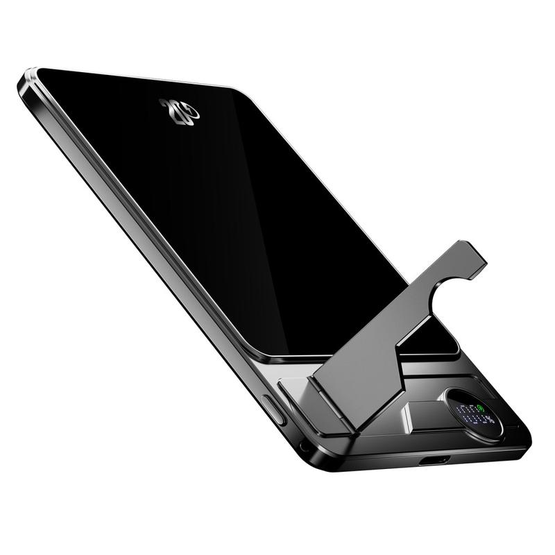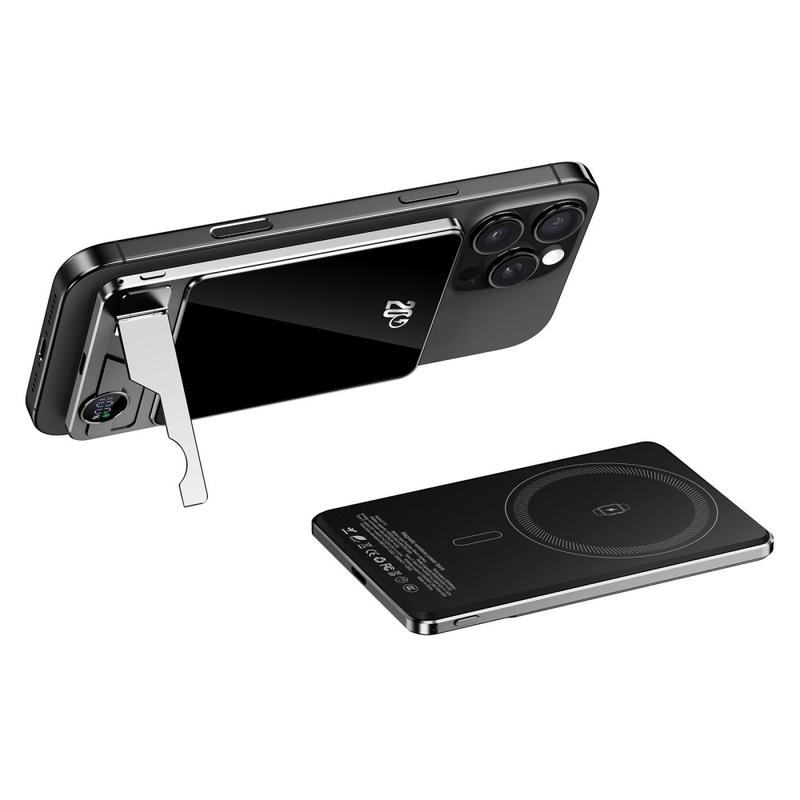 Få strøm hvor som helst med F15 Ultra Thin Portable Power Bank. Denne elegante laderen har en kraftig litiumpolymercelle på 10000mAh og leverer rask 15W magnetisk trådløs lading som er kompatibel med MagSafe-enheter, i tillegg til ekstra støtte for lading av Apple Watch. Den ultratynne aluminiumslegeringen måler bare 13,5 mm, noe som gjør den lett og enkel å bære. Et innebygd sammenleggbart stativ forvandler den til en praktisk ladestasjon på skrivebordet, mens det digitale displayet holder deg informert om gjenværende batteritid. F15 er perfekt for reise, jobb og hverdagsbruk, og er den ideelle blandingen av bærbarhet, stil og smart ladeytelse.