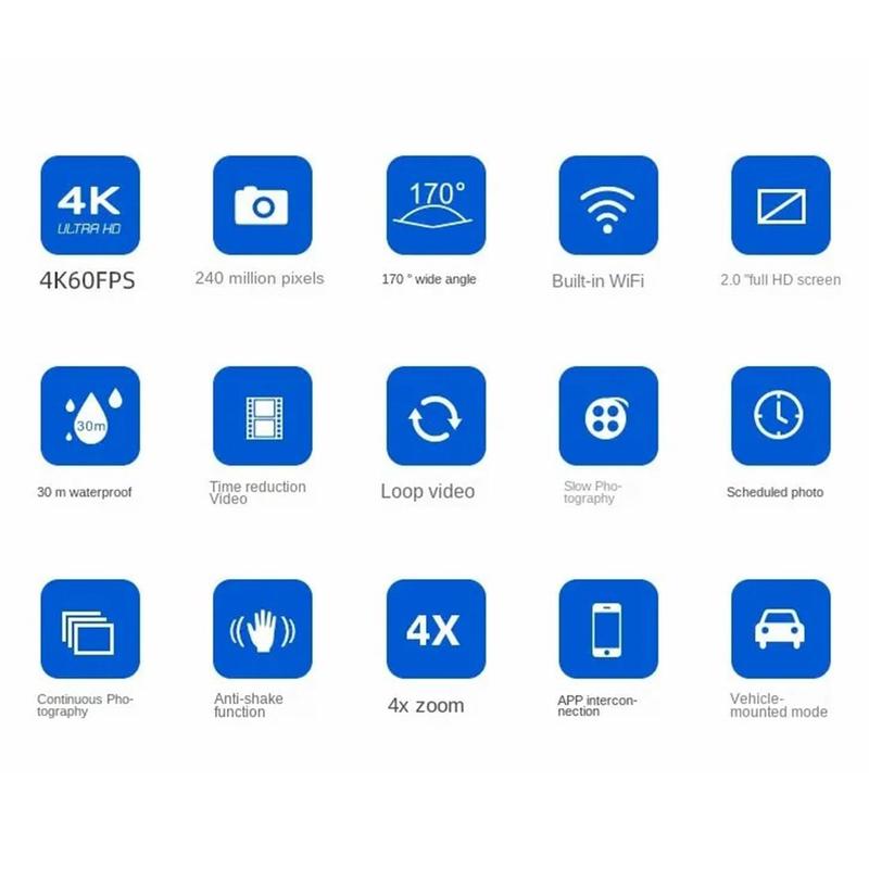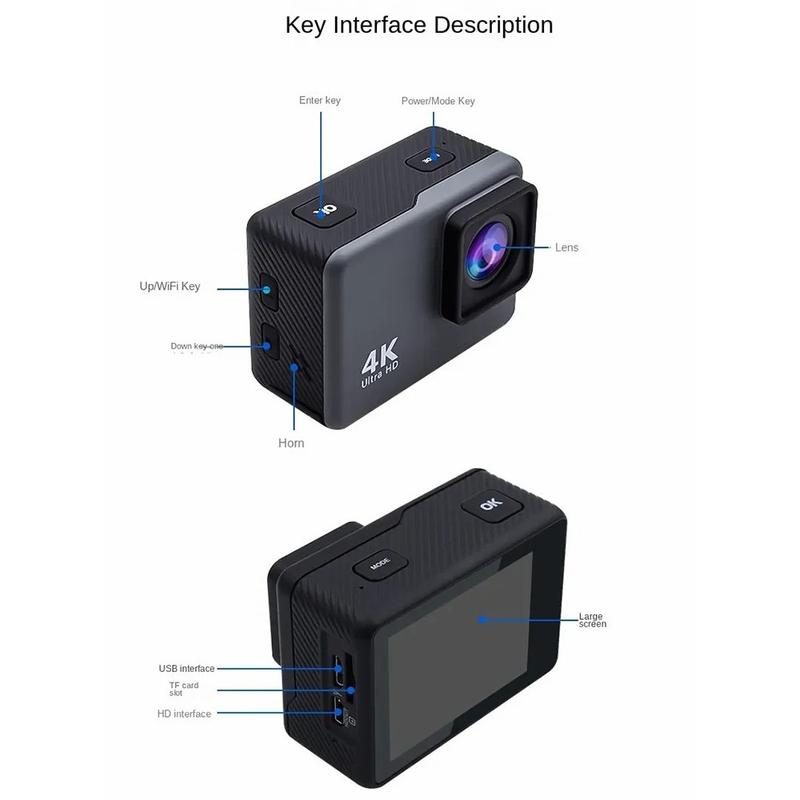 F300AB-R 2-tommers 4K WiFi-actionkamera med berøringsskjerm og 30 m undervannshus