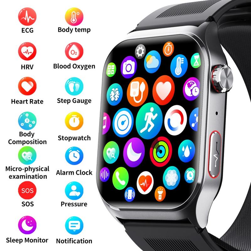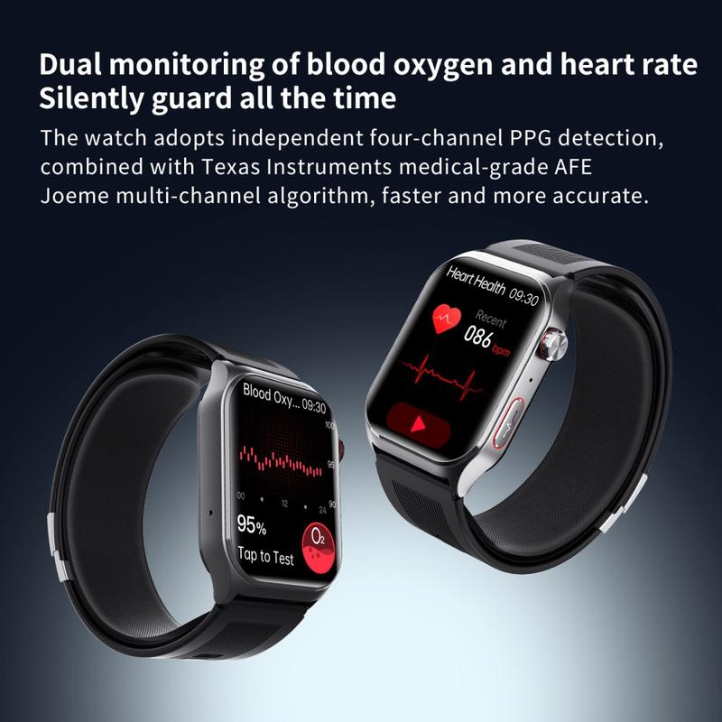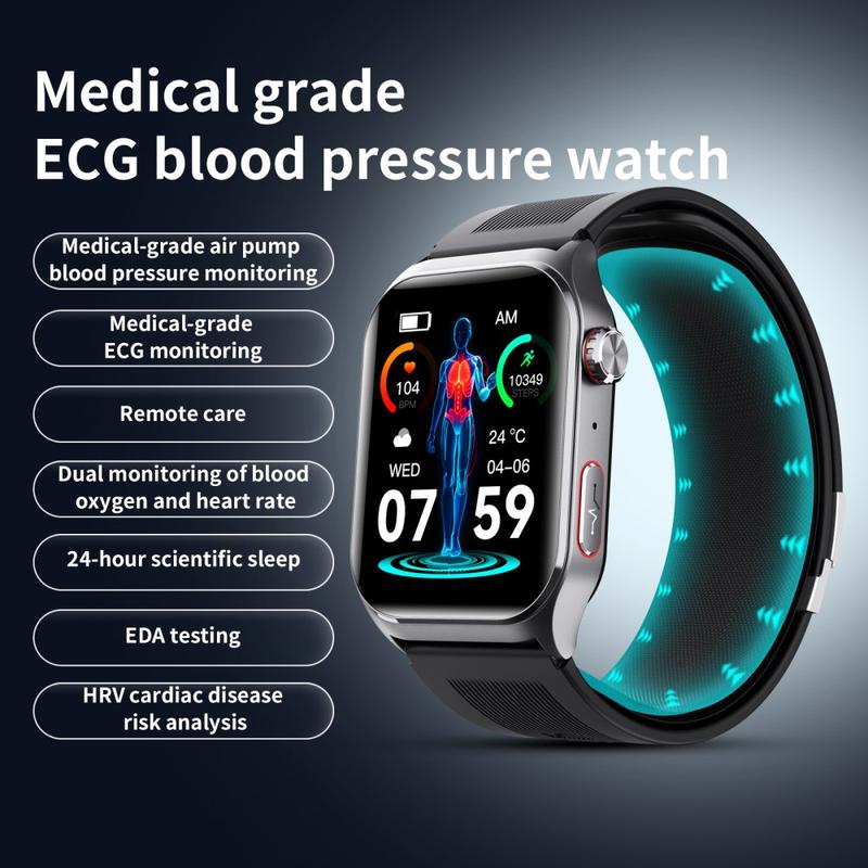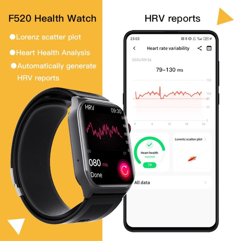 F520 Avansert smartklokke med luftpumpe, blodtrykk, EKG, hjertefrekvens og søvnovervåking - 2,1" IPS-skjerm, SOS fallalarm