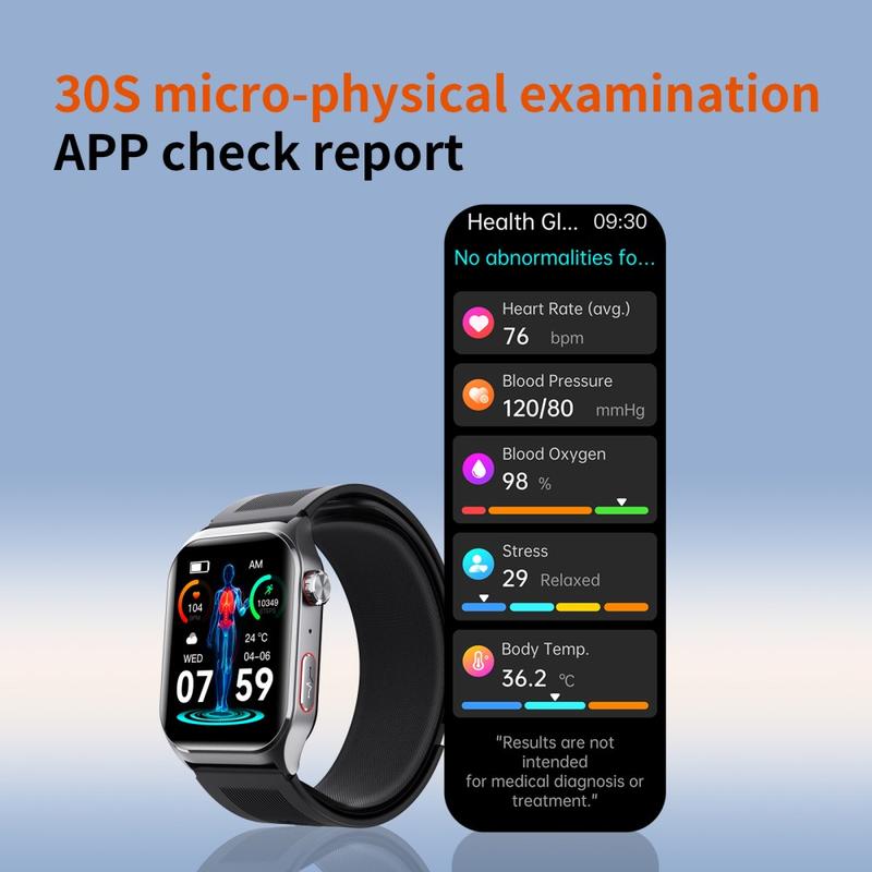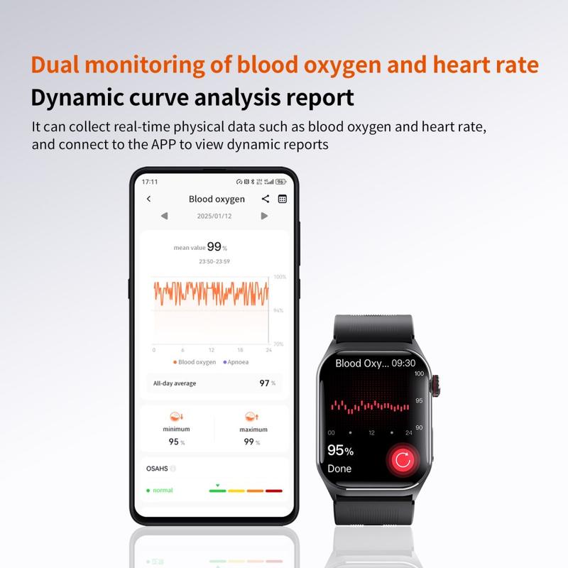 F520 Air Pump Smart Watch er utviklet for å tilby et komplett økosystem for helseovervåking i sanntid ved hjelp av profesjonell teknologi. Utstyrt med en piezoelektrisk mikroblåsemaskin fra Murata, støtter den oscillometrisk blodtrykksmåling på opptil 400 mmHg. Kombinert med en EKG-modul av medisinsk kvalitet, hjerterisikovurdering, SpO₂-deteksjon ved rødt lys, kortisolinnsikt og dynamisk hjertefrekvensovervåking døgnet rundt, hjelper denne smartklokken deg med å forstå kroppen din med presisjon på laboratorienivå.