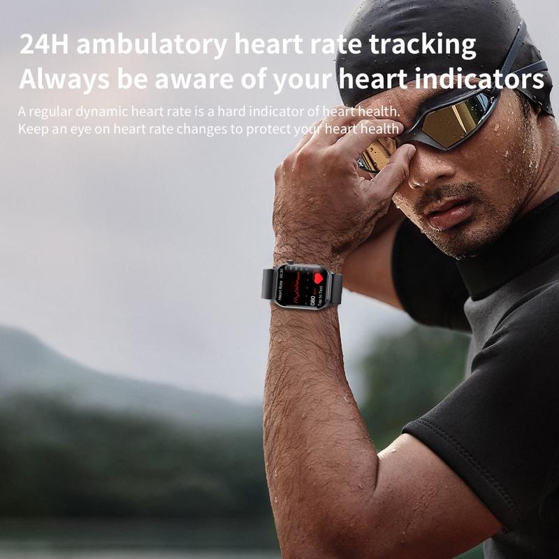 F520 Avansert smartklokke med luftpumpe, blodtrykk, EKG, hjertefrekvens og søvnovervåking - 2,1" IPS-skjerm, SOS fallalarm