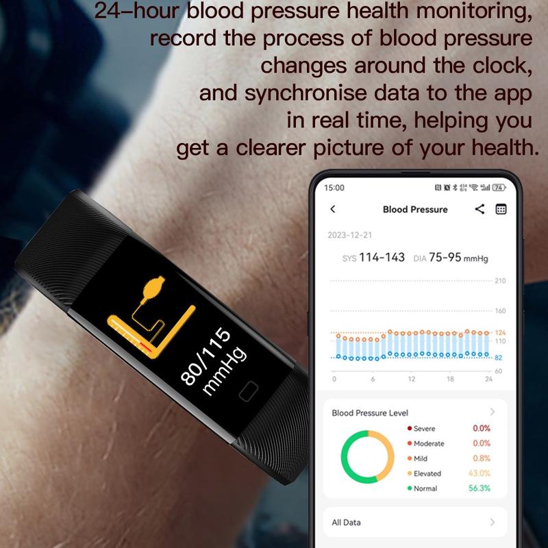 F71 Smart Bracelet tilbyr en alt-i-ett-helsesporingsopplevelse med overvåking av puls, oksygen i blodet (SpO₂), blodtrykk og kroppstemperatur. Perfekt for å holde øye med velværet ditt gjennom hele dagen.