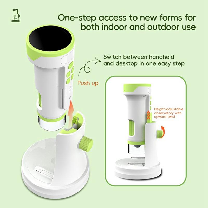 F9 digitalmikroskopet er et kompakt og lærerikt apparat som er utviklet for å introdusere barn og nybegynnere til den mikroskopiske verden på en morsom og tilgjengelig måte. Med både håndholdt og stasjonær bruk, en klar, rund IPS-skjerm og høyoppløselig foto- og videoopptak kan unge oppdagelsesreisende observere, fange og lære uansett hvor nysgjerrigheten melder seg - hjemme, på skolen eller utendørs.