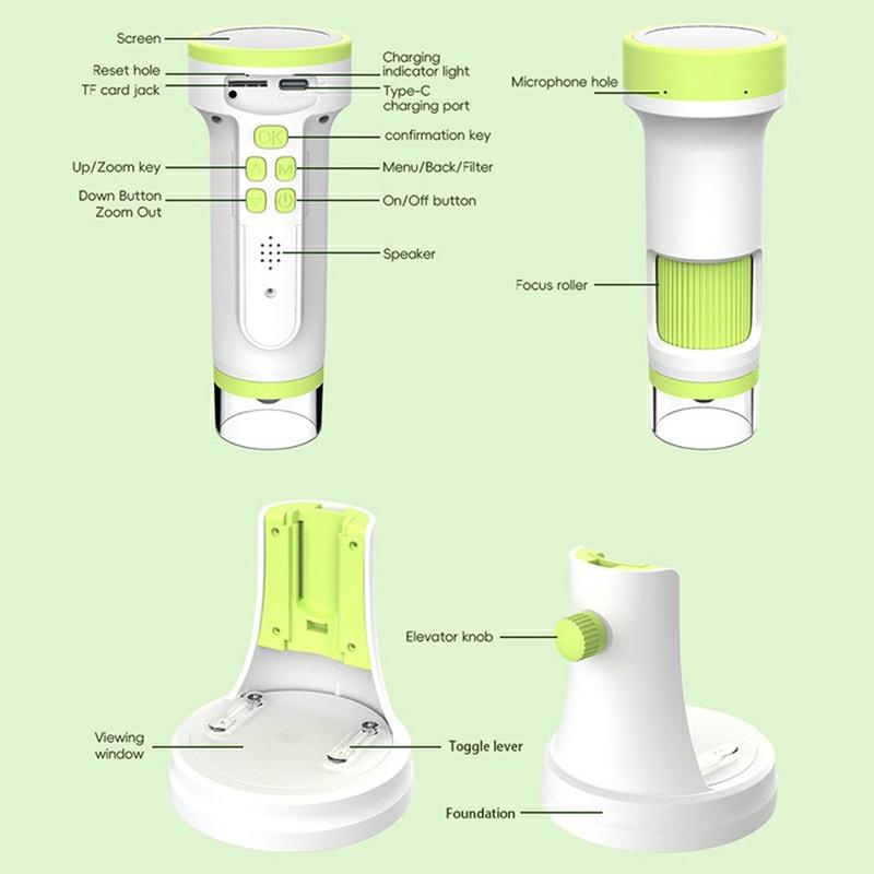 Bærbare digitale mikroskoper oppmuntrer til praktisk læring og nysgjerrighet ved at barna kan utforske på egen hånd. IPS-skjermer gir jevnere farger og bredere visningsvinkler, noe som er spesielt nyttig for unge brukere. Foto- og videoopptaksfunksjoner bidrar til å forsterke læringen ved at elevene kan se gjennom og dele det de observerer.