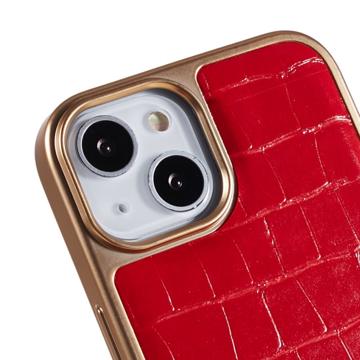 FIERRE SHANN For iPhone 14 Plus Krokodilletekstur PU-skinnbelagt TPU-bakdeksel Smarttelefon elektrobelagt beskyttelsesdeksel