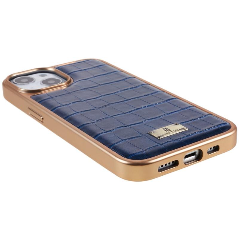 FIERRE SHANN For iPhone 14 Plus Krokodilletekstur PU-skinnbelagt TPU-bakdeksel Smarttelefon elektrobelagt beskyttelsesdeksel