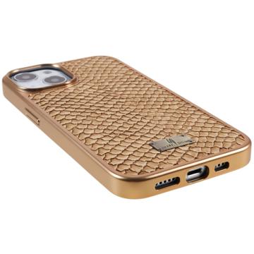 FIERRE SHANN For iPhone 14 Plus Snake Texture PU-skinnbelagt TPU-telefonveske Elektrobelagt støtsikkert anti-ripedeksel