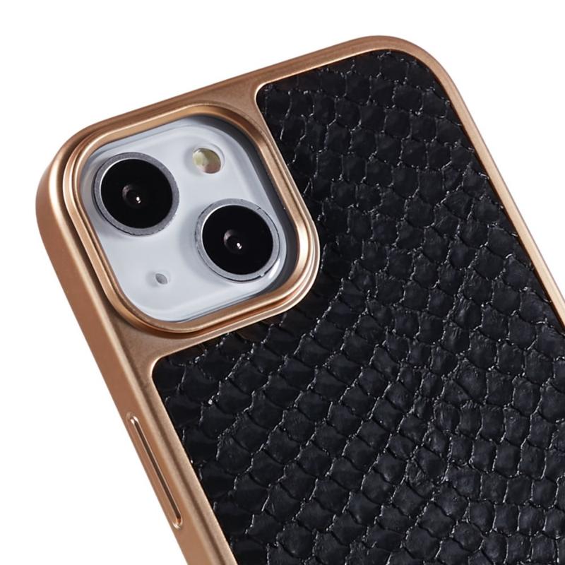 FIERRE SHANN For iPhone 14 Plus Snake Texture PU-skinnbelagt TPU-telefonveske Elektrobelagt støtsikkert anti-ripedeksel
