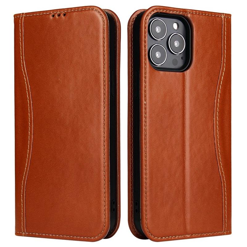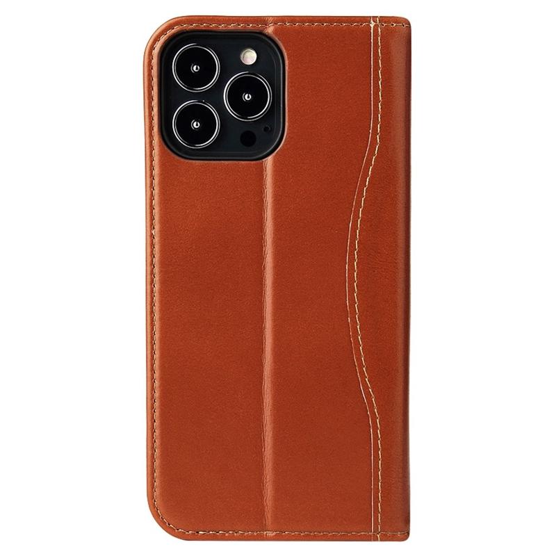 FIERRE SHANN telefondeksel for iPhone 14 Pro, topplags lommebokstativ av okseskinn Støtsikkert mobiltelefondeksel