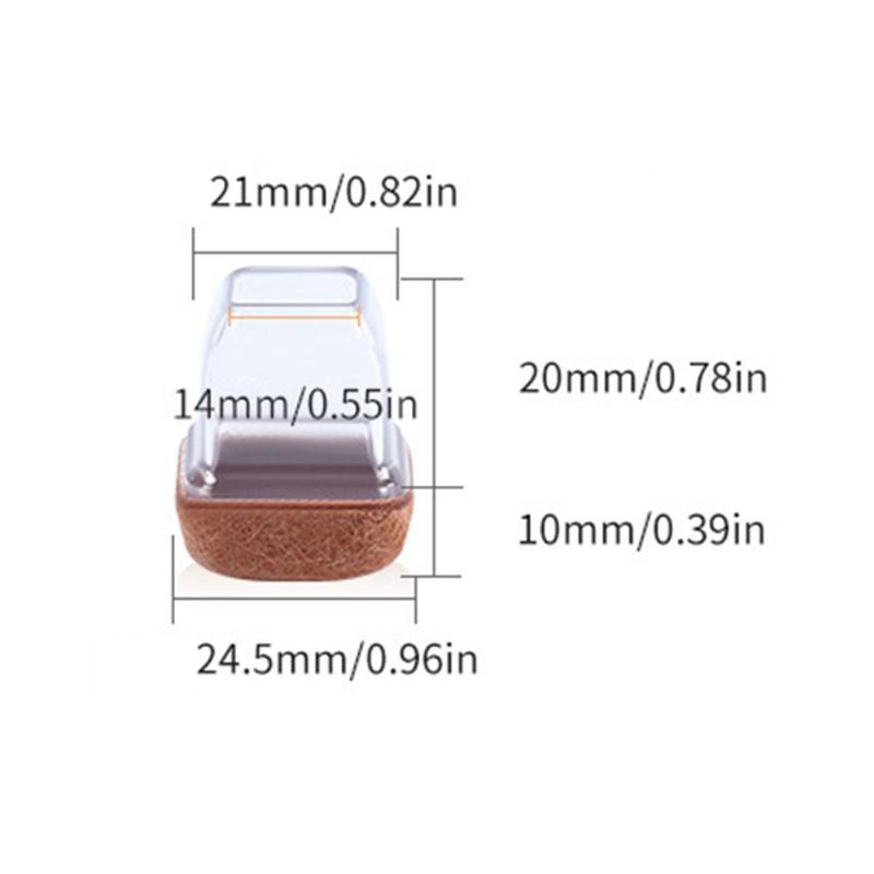 Firkantede stolben / møbelhetter i transparent med filt - Medium - 8 stk.