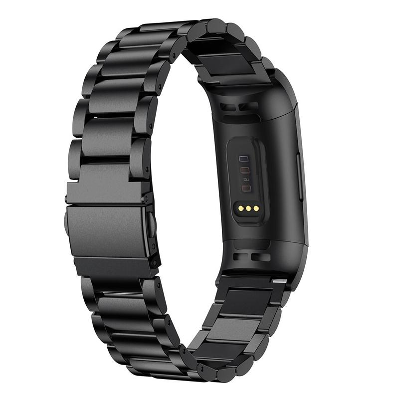 Denne remmen er laget av slitesterkt rustfritt stål, og den er veldig behagelig å ha på. Den har en praktisk sammenleggbar spenne og metallramme som passer perfekt til smartklokken din. Med en klassisk design gjør denne remmen din Fitbit Charge 3/4 egnet for alle anledninger.