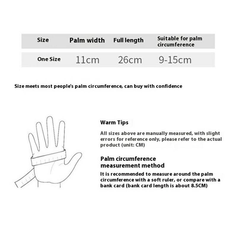 - One-Size-Fits-Most - Håndflatebredde: 11 cm | Lengde: 26 cm | Passer til håndflateomkrets: 9-15 cm.