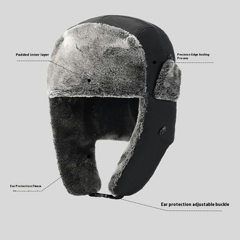 Vinterlue - fleecefôret, tykk, varm utendørslue med ørebeskyttelse og vindtett design
