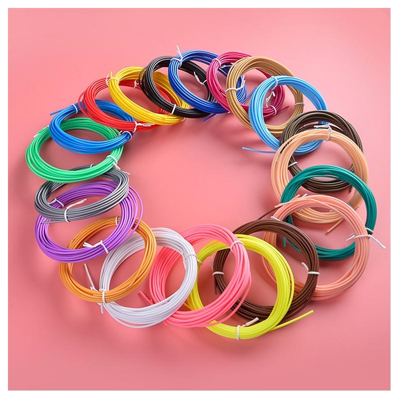 Fyll på 3D-utskriftspennen for barn med disse flerfargede PCL-filamentene! Universell kompatibilitet - 1,75 mm utskriftsfilamentdiameter gjør dem egnet for de fleste 3D-penner. Hver 3D penn filament refill farge har en lengde på 5 meter. Legg de brukte filamentene i varmt vann, og etter en stund kan du bruke dem som plastelina.
