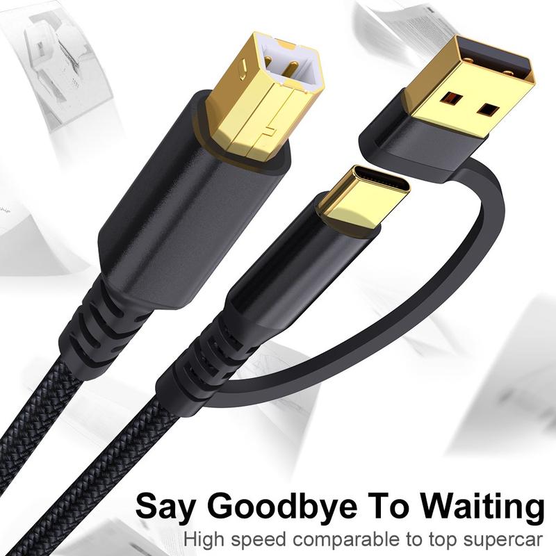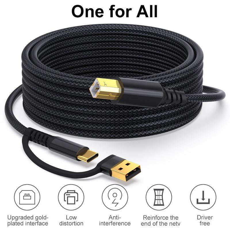 Flettet 2-i-1 USB-A/USB-C til USB-B-skriverkabel - 5m