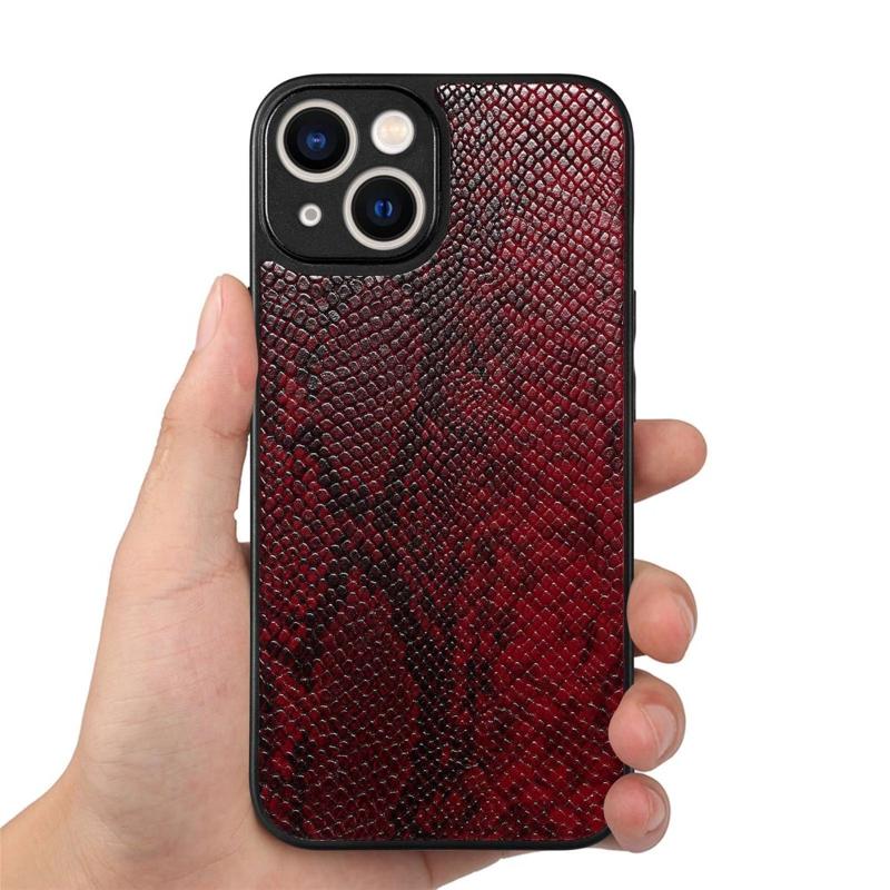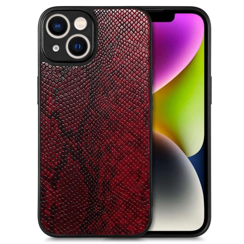 For iPhone 14 Støtsikker telefondeksel med nøyaktig utskjæring Snake Texture PU-skinnbelagt TPU-bakdeksel