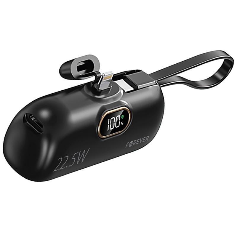 Forever MTB-100 Lightning Mini Power Bank med USB-C-kabel 5000mAh - 22.5W On-the-Go Boost for Lightning-enheter