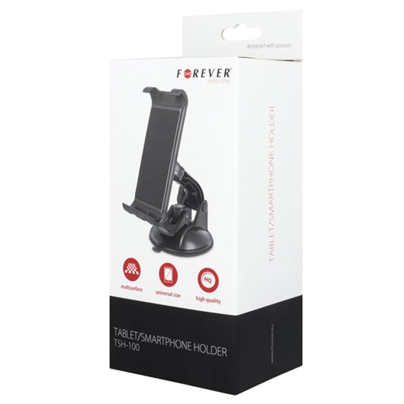 Spesialdesignet til å fastholde et hvilket som helst nettbrett som er på mellom 12,5 cm - 19,5 cm brede eller en hvilken som helst smarttelefon i en vertikal posisjon som er på opptil 12,5 cm - 19,5 høye. Du kan bruke Forever TSH-100 som en bilholder, samt en bordholder.