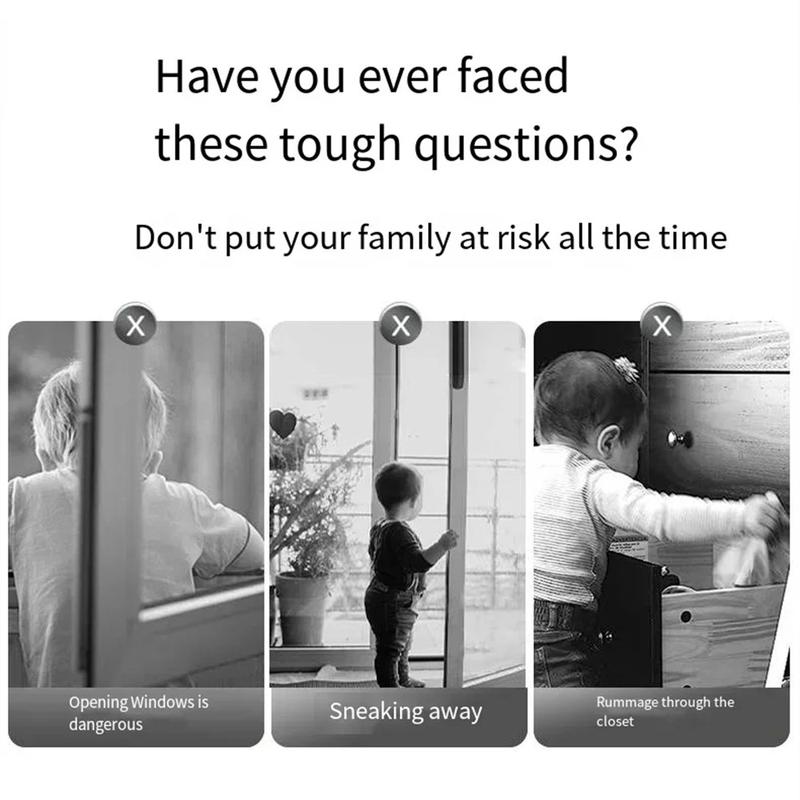 - Designet for å sikre vinduer, skyvedører, skuffer og skap
