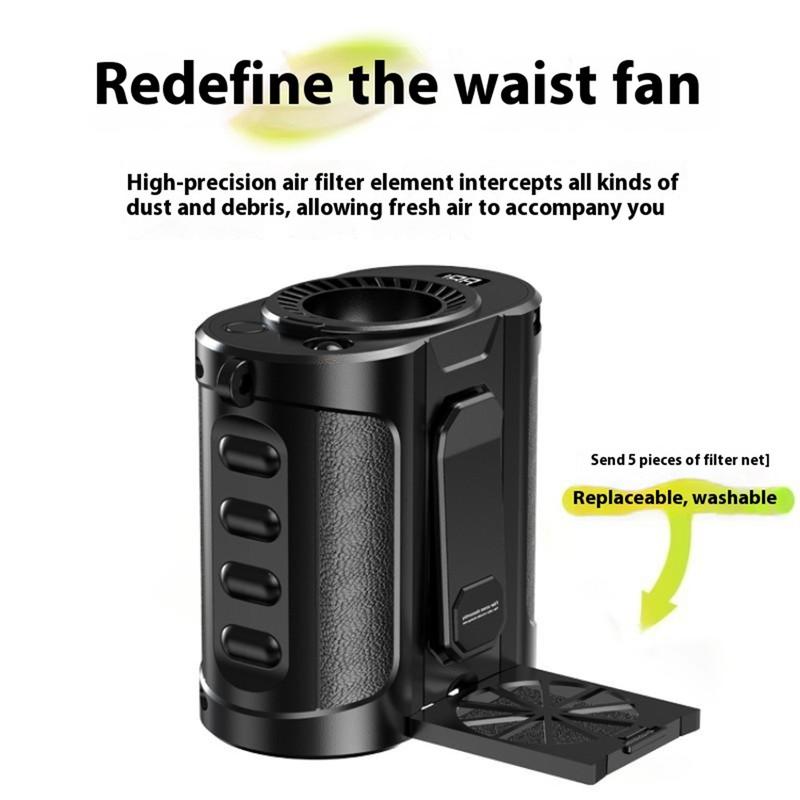 G30 bærbar vifte til midjen - 8000 mAh, 5 hastigheter, skrivebordsstativ, LED-lys, powerbank-funksjon, 15 000 o/min